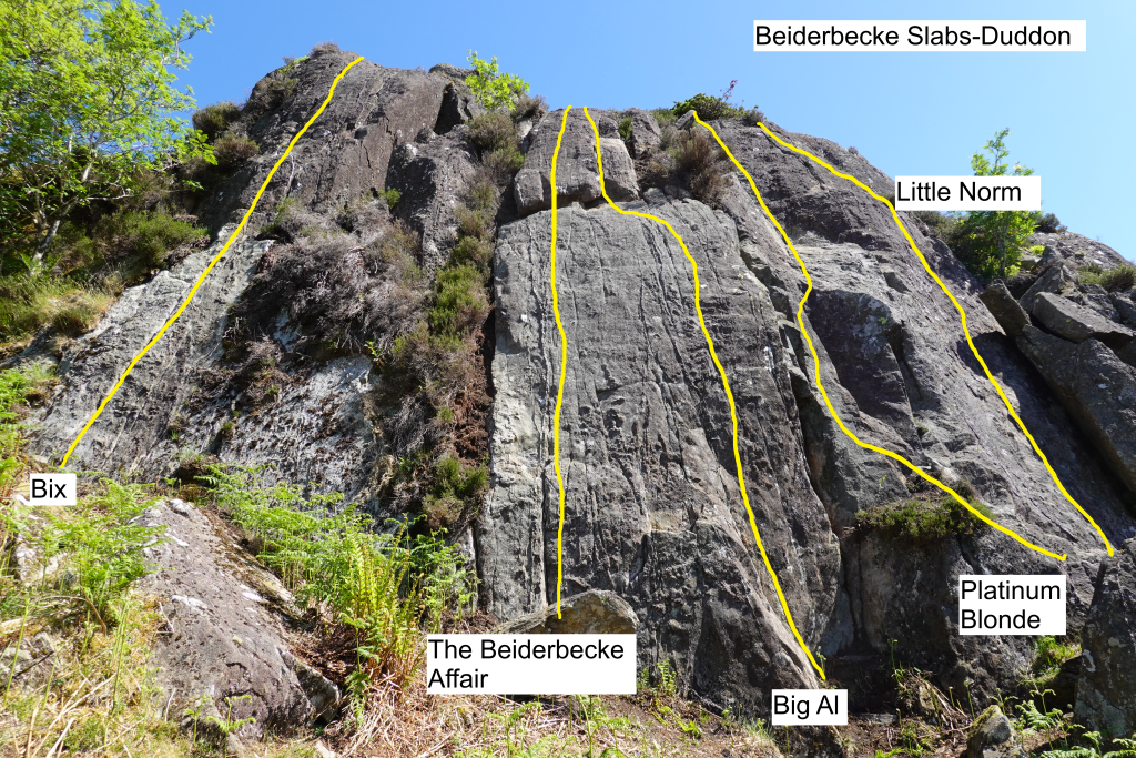 Posted by: Dave Geere, 25.03.202606.05.2025, Dave Geere, John Daly, John L Holden A continuously interesting route. Climb the left side of the main slab to the overlap, step right and finish directly up the narrowing slab. See Topo