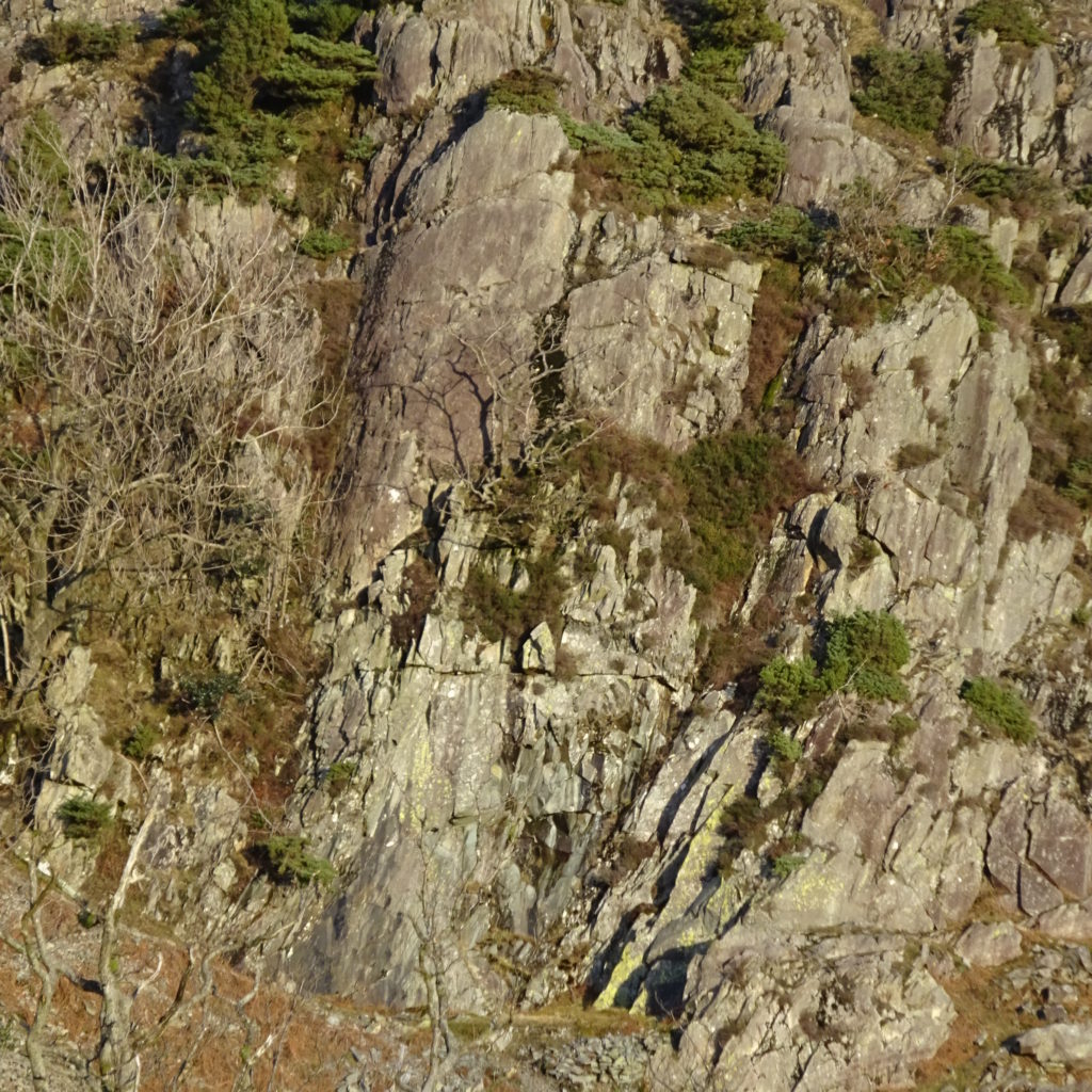 North west of Thrang Crag stands an obvious pillar left of a mini quarry. Grid Ref.  NY 321 058.